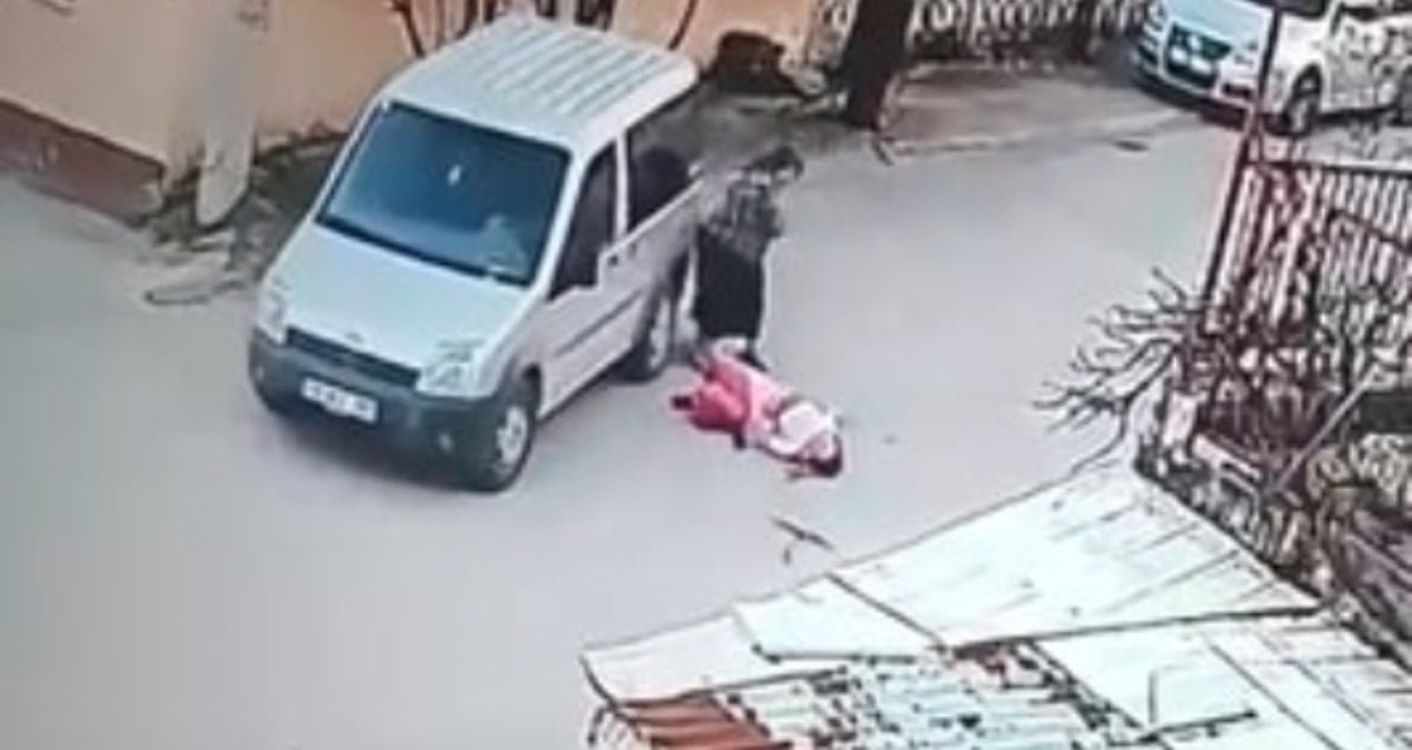 O.T.’nin aracıyla eşine çarparak ayaklarını ezdiği anlar güvenlik kamerasına yansıdı.